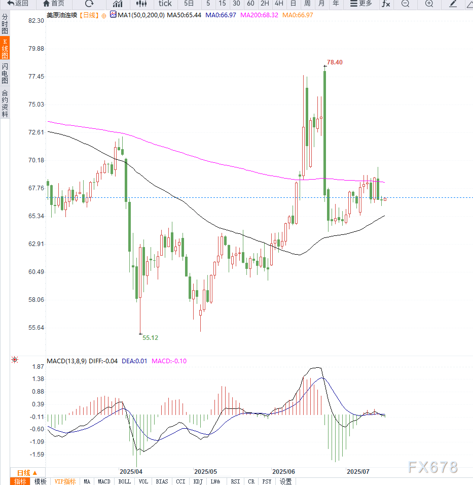油价近期维持在窄幅波动区间,原因在于:一方面夏季旅行带动燃料消费回升,另一方面则是对美国关税措施可能抑制经济增长和能源消费的担忧。   LSEG分析师在报告中指出:“夏季出行高峰和工业活动的上升正在为油价提供支撑。”   他们补充称:“美国‘独立日’期间汽油消费量明显增加,表明燃料需求强劲,这在一定程度上缓解了库存上升和贸易担忧所带来的压力。”   尽管亚洲国家第二季度经济增速有所放缓,但程度不及市场预期。部分原因是企业提前采购以规避潜在的美方加税措施。   数据显示,亚洲国家6月的原油加工量同比大增8.5%,为2023年9月以来的最高水平。分析指出,国家炼油厂利润改善,推动了炼油活动的积极回升。   市场咨询机构表示:“随着炼油厂运营加速,燃料需求稳步回升。”   与此同时,石油输出国组织(OPEC)周二发布的月报也增强了市场信心。OPEC预计,今年下半年全球经济将好于上半年,油品需求有望进一步提升。   报告称:“印度、亚洲国家和巴西的经济增长超出预期,而美国和欧盟经济也在去年低迷后逐步复苏。”   从日线图走势来看,美原油在66美元附近构筑双底结构后反弹,当前价格站稳20日均线,并突破短期下降趋势线,MACD指标显示动能柱由负转正,短线动能增强。   若后续突破70美元阻力位,则有望进一步测试72.5美元区域;反之,若跌破66美元,或将回测64美元支撑区域。